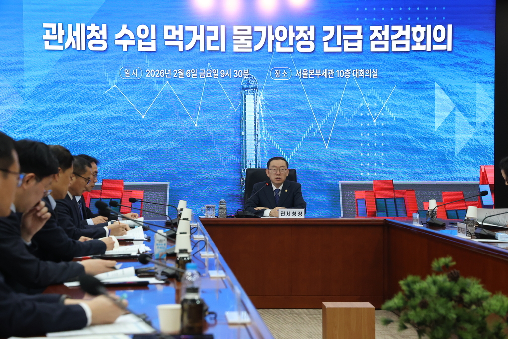 | ▲ 사진=관세청 제공, 물가안정 긴급 점검회의를 주재하는 이명구 관세청장, 2026.02.06. |